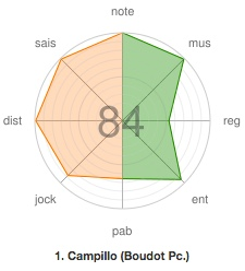 Equidegraph se présente sous forme d’un diagramme de Kiviat (radar). Sur chaque axe est représentée une caractéristique du partant :